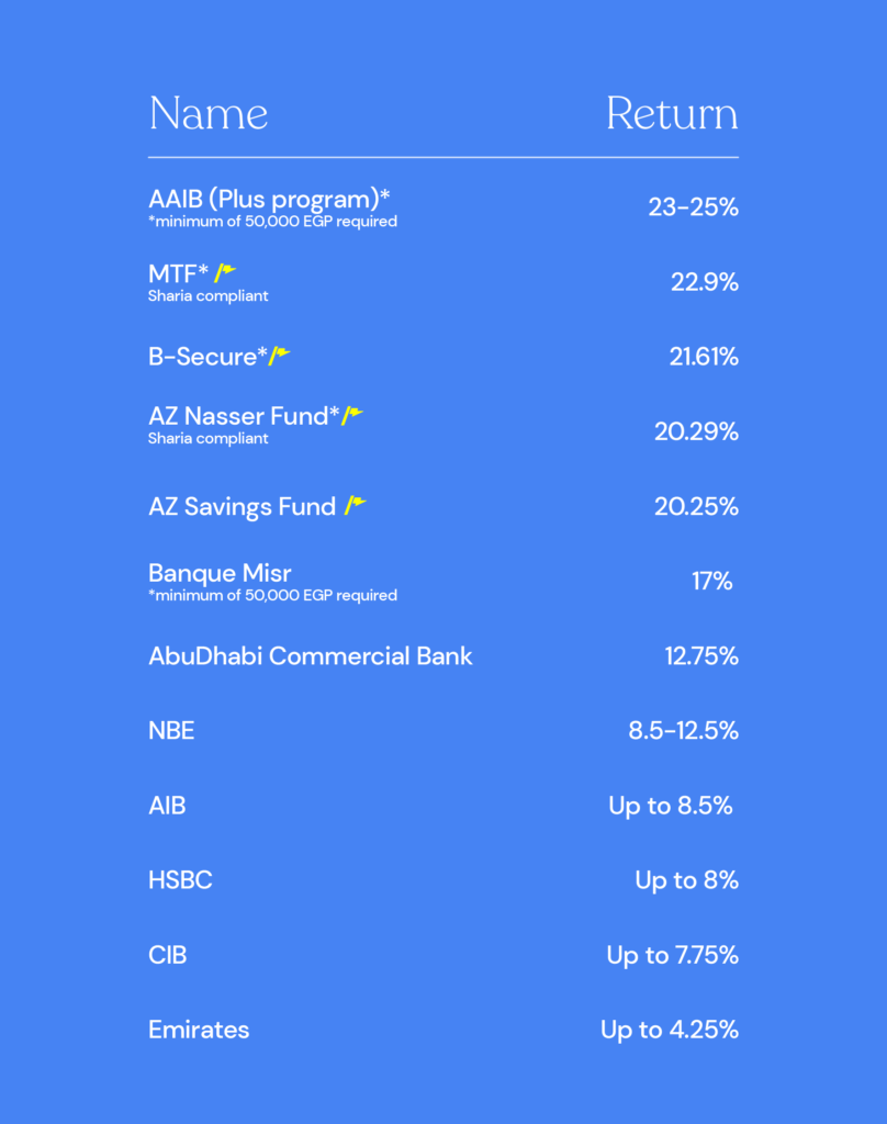 Thndr savings products’ return VS. Egypt’s largest banks’ savings return: