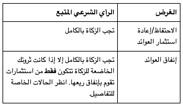 إذا كانت ثروتك الخاضعة للزكاة تتكون فقط من استثمارات أو شهادات تقوم بإنفاق ريعها (بدون أي أصول أخرى):