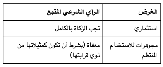 ملاحظة: الأصول الثابتة (المباني، المعدات، السيارات المستخدمة في العمل، أدوات التصنيع) لا تجب فيها الزكاة.