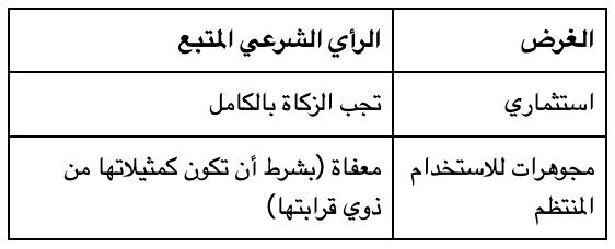 - البديل: يجوز في هذه الحالة إخراج 10 % من العائد فقط كزكاة ولا يشترط مرور عام قمري على أصل المال