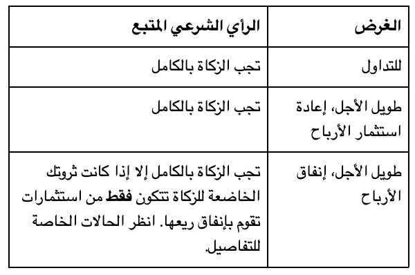 ملاحظة: إذا كنت تمتلك أصولاً أخرى خاضعة للزكاة، تُدرج هذه الاستثمارات/الشهادات ضمن الحساب العادي بنسبة ٢.٥٪.