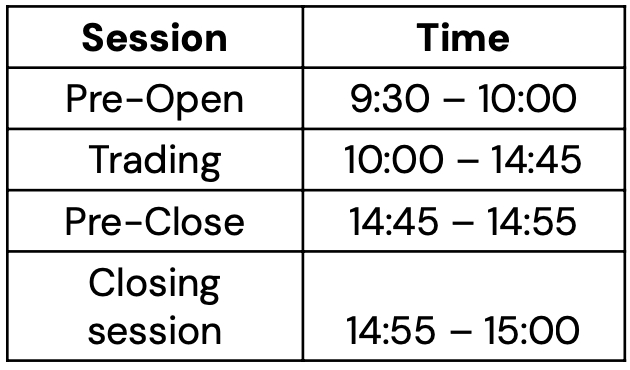 - Trading Days: Monday to Friday